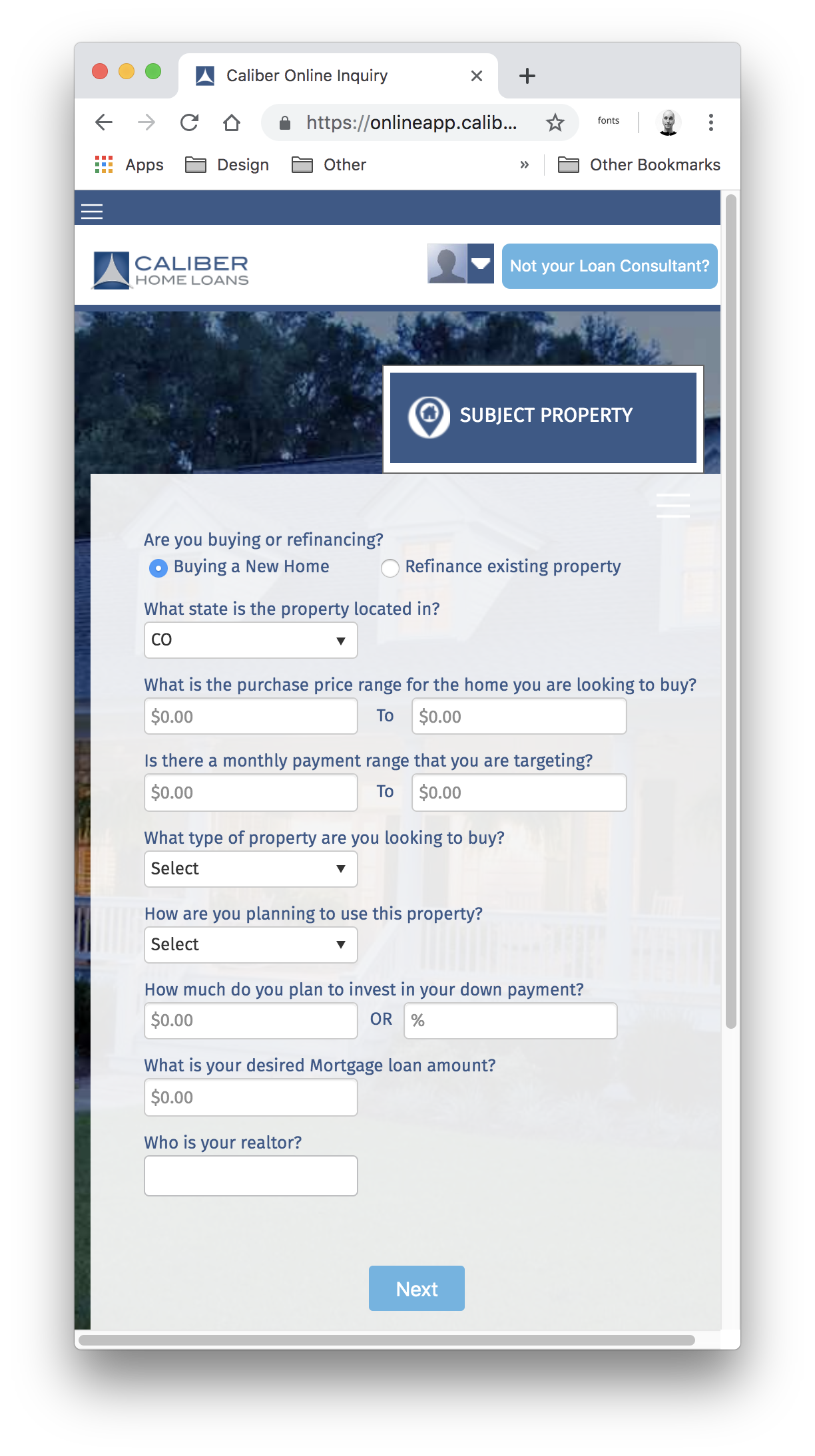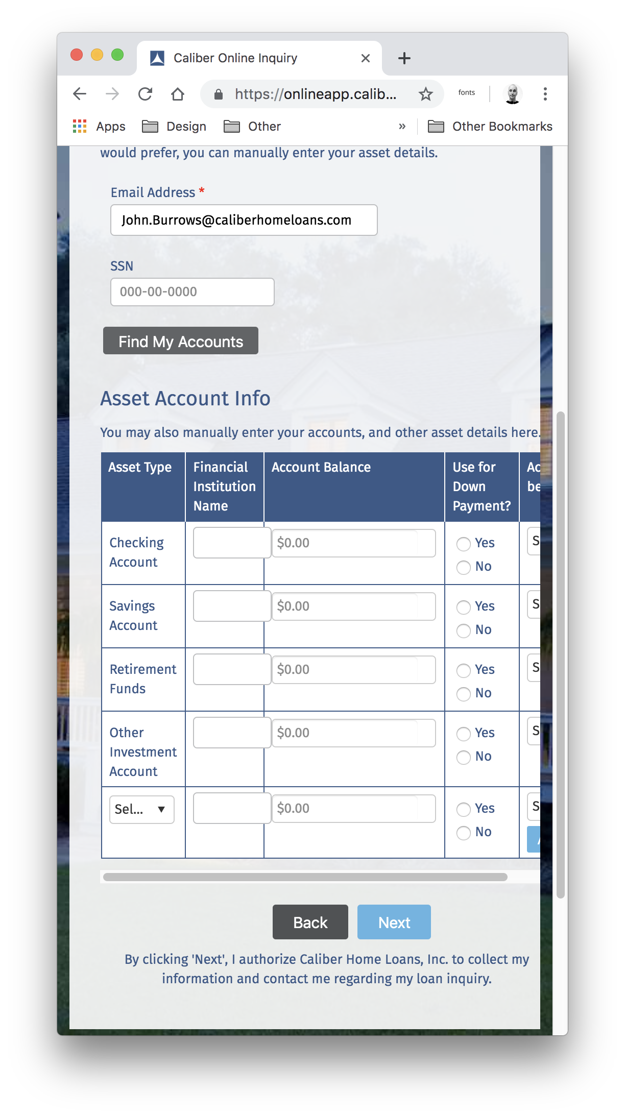 We could only go so far through the loan process without actually applying for a loan.