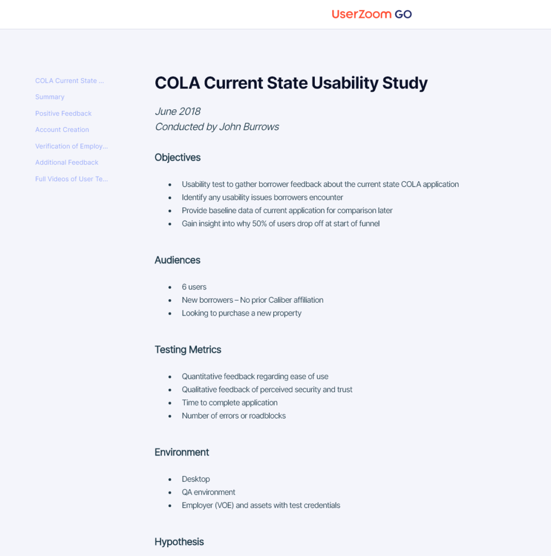 - Baseline unmoderated usability testing