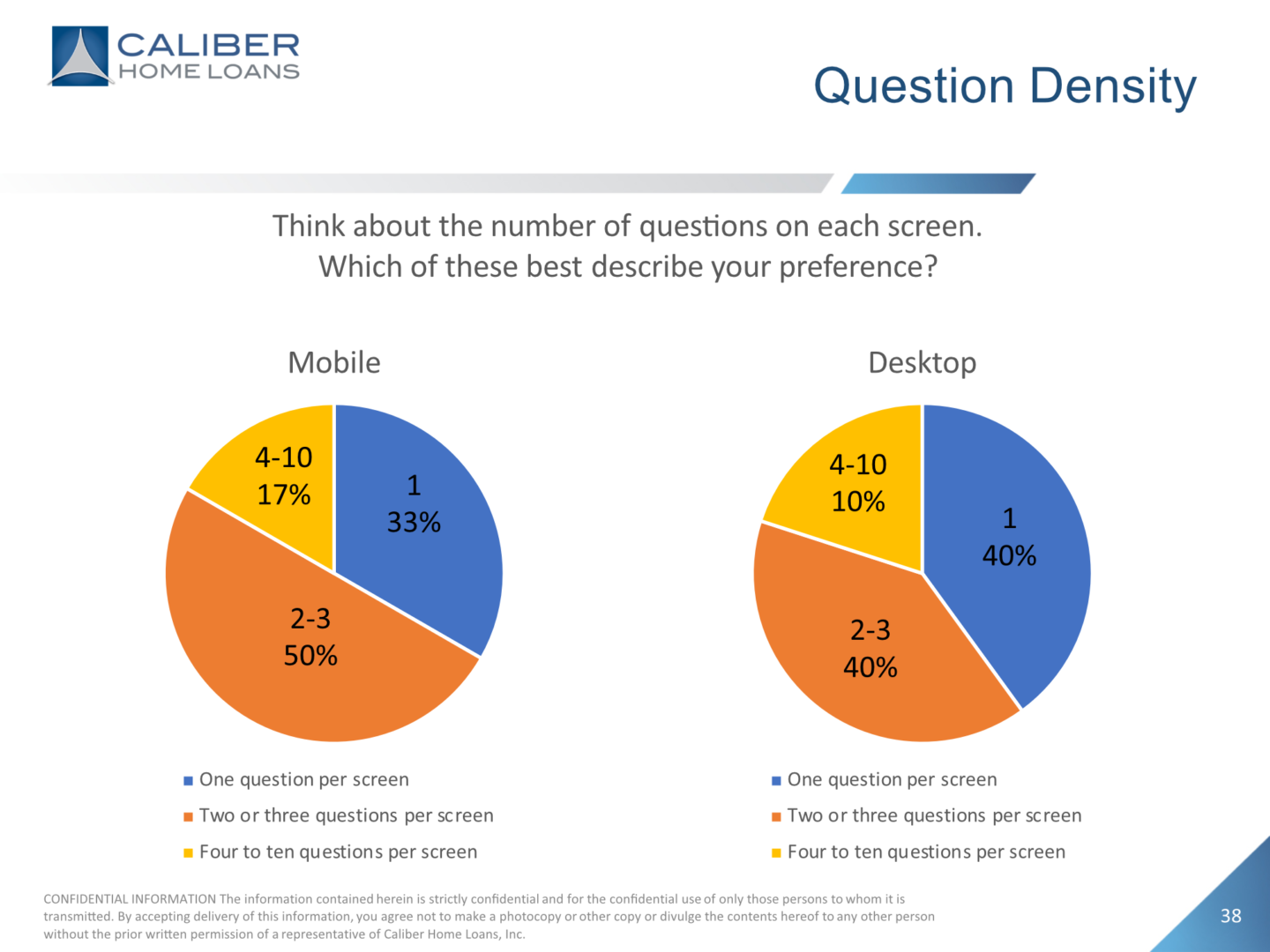 - 81% of users prefer 1 to 3 questions per screen